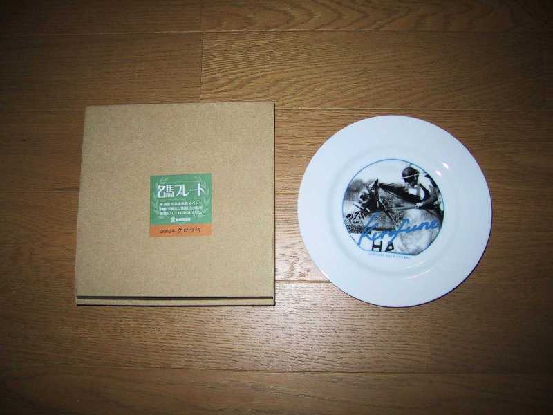 2002/9/28札幌競馬場で、ぎんが4分の1の確率の抽選でゲットしたクロフネ名馬プレートの紹介です。 当日の収支は散々やったけど、せっかくゲットしたんやし、好きな馬の1頭であったクロフネも当日見ることができたことやし、札幌競馬場に行った証として、また札幌遠征のお土産として掲載することにしました。 |